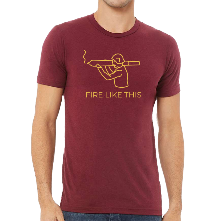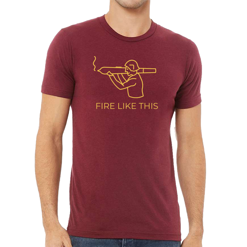 Your classic Fire Like This Tee with a new twist! Maroon tee with yellow print. 50% polyester, 25% combed and ringspun cotton, 25% rayon Size Body Length (in) Body Width (in) S 28 18 M 29 20 L 30 22 XL 31 24 2XL 32 26 3XL 33 28